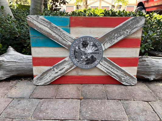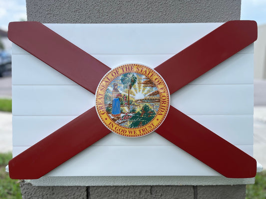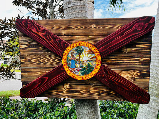 Elevate your space with a one-of-a-kind, handcrafted solid wood Florida flag, and bring a piece of the Sunshine State's artistry into your life.