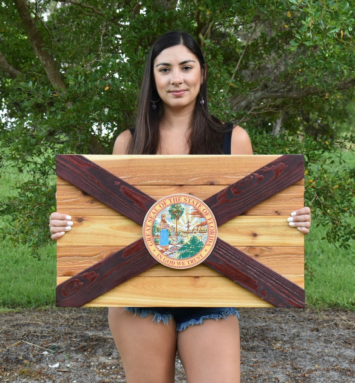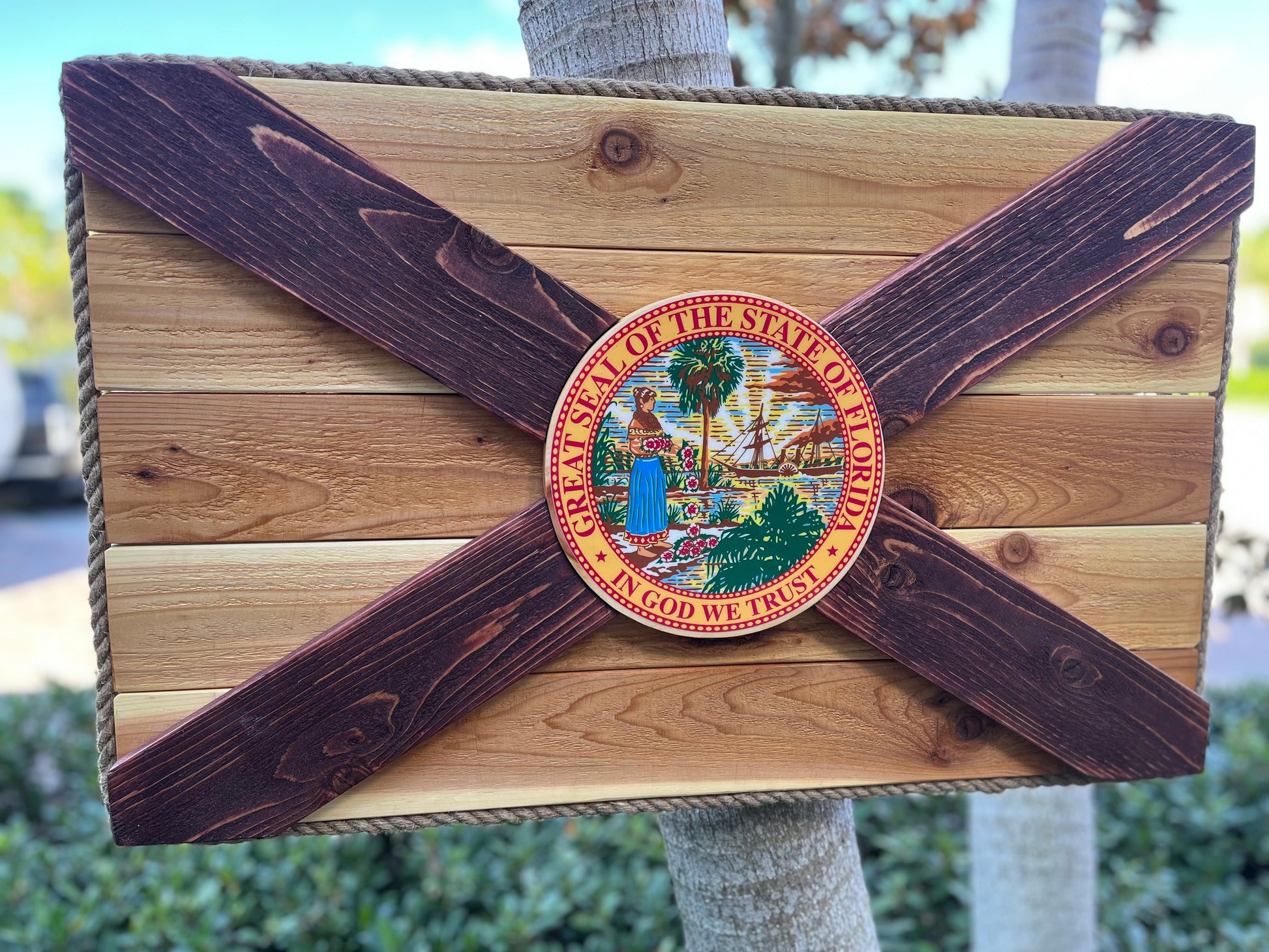 Cedar Hammock Solid Wood Florida Flag