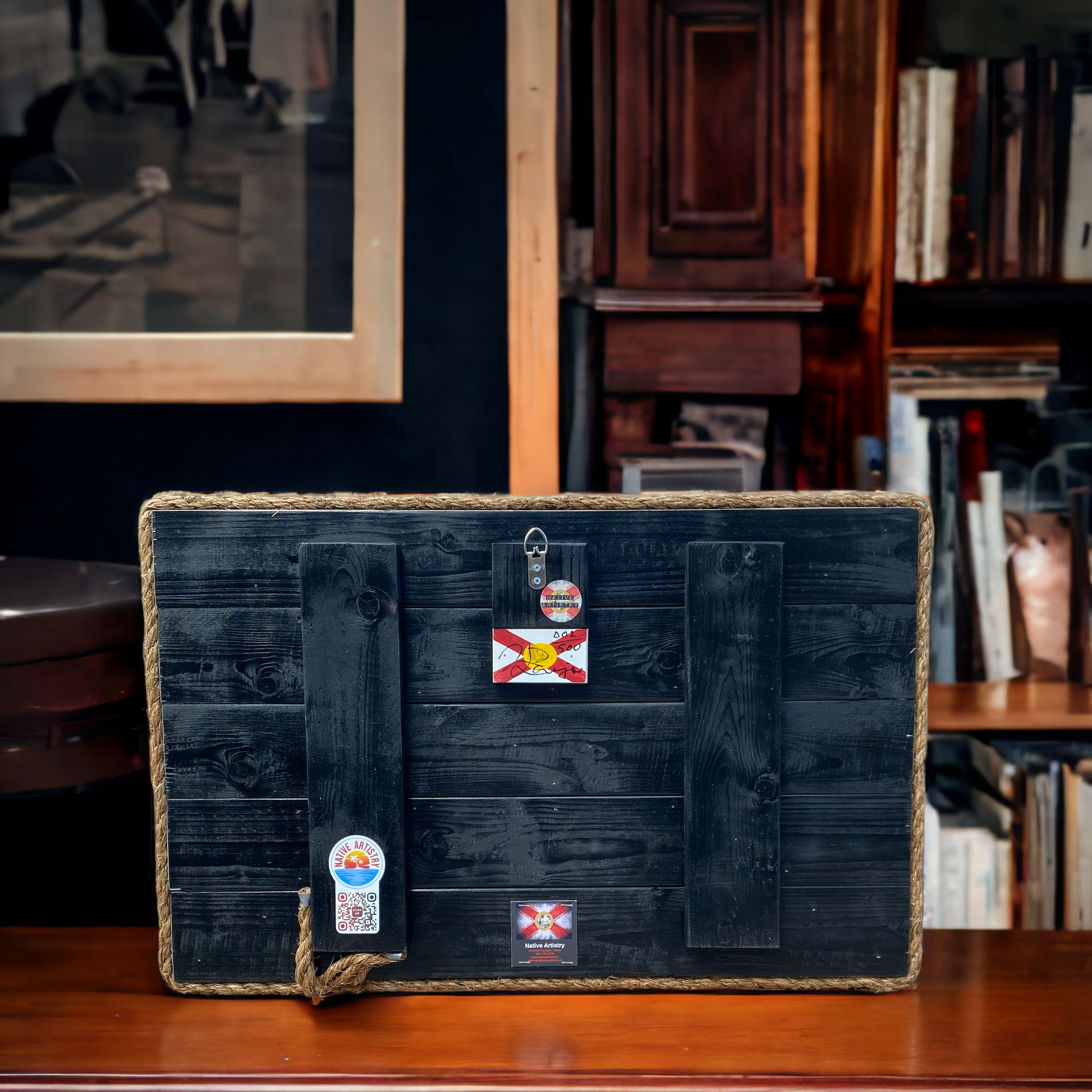 Each item is custom-made to order, ensuring uniqueness. Please allow up to 3 weeks for production. We'll keep you updated via email and/or text. Once shipped, you'll receive a tracking number. Free UPS Ground shipping; Florida deliveries usually take 1-2 business days. Each piece is signed, numbered, and dated by our artist. Your artwork could qualify for our Trade-In, Trade-Up Program 2 years from the date on the back, subject to its condition.