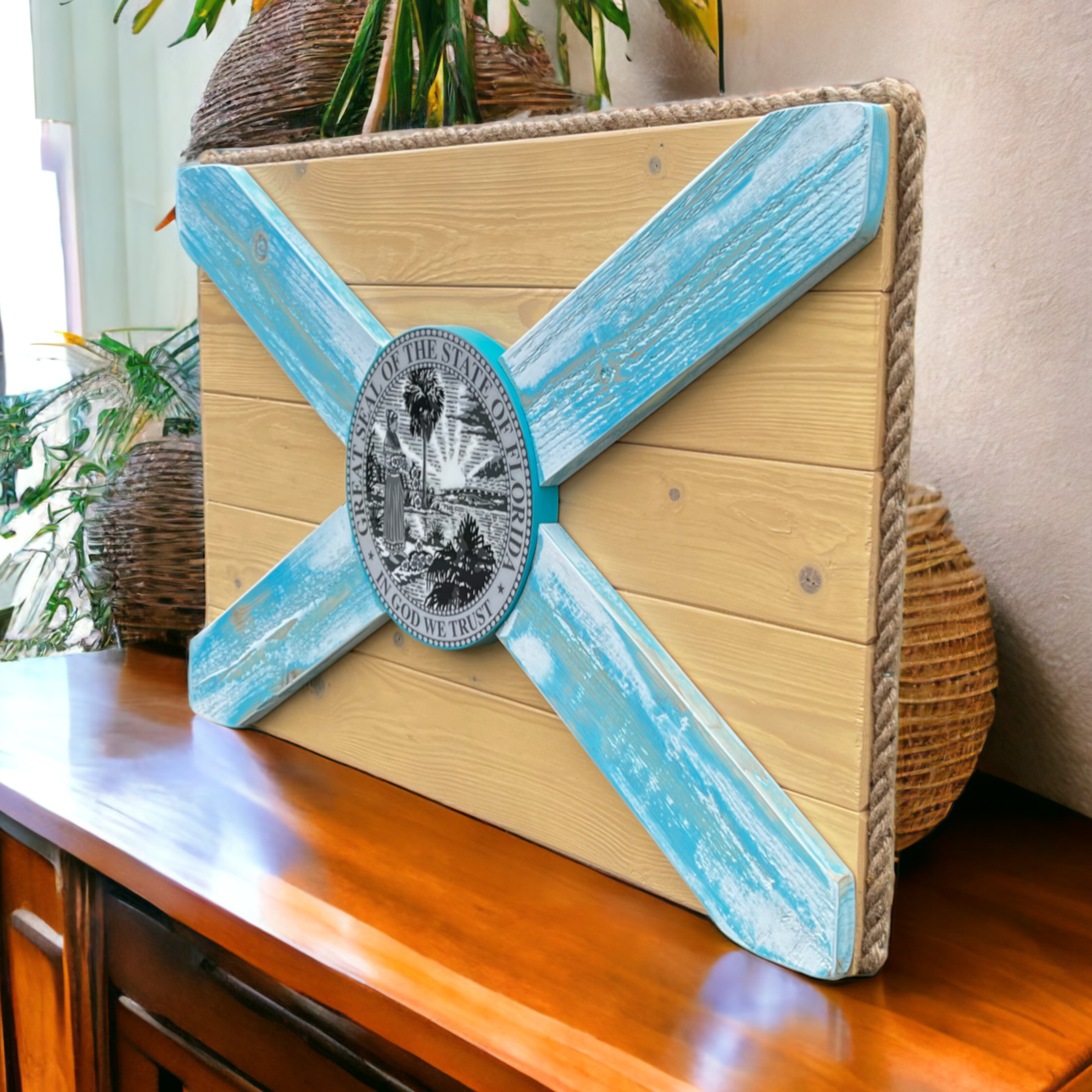 Make a coastal statement in your home or office with a one-of-a-kind Islamorada Florida flag! Islamorada is made with white cedar and poplar wood, giving off a rustic, all-natural vibe. Show off your Florida pride with the perfect combination of blue and natural wood. It's beachy-keen!